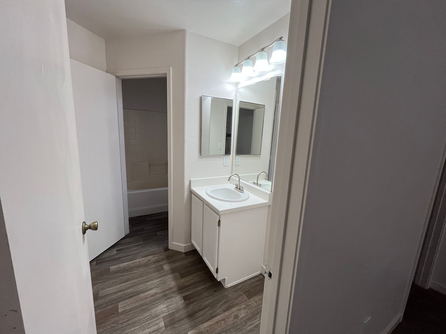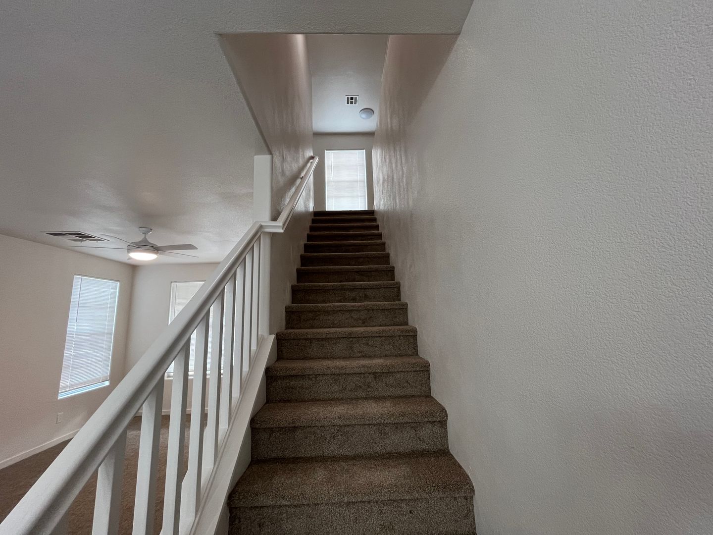 Beautiful remodeled home that features new cabinets, counter tops, flooring, doors, and painted walls. This house has a great layout. Spacious downstairs with a living room and dinning area, new kitchen, laundry room, and 1/2 bath. The upstairs features a generously sized primary suite with a ceiling fan, walk in closet, double sink vanity, and bath/shower combo. Guest bedroom's with Jack & Jill bath. No rear neighbors, open space. Gated Community with a pool and park. Solar installed, tenant to pay small monthly fee to Owner and a bill to NV energy.