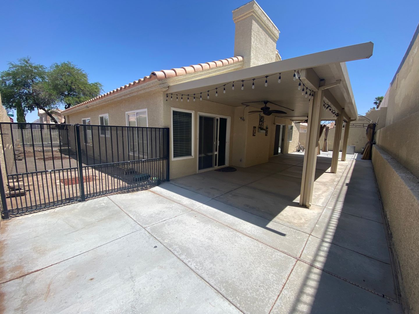 Henderson Cutie! This fantastic single story 3 car garage home offers 4 bedrooms 3baths. One guest room has it's own full bath. Spacious primary bedroom featuring a custom bathroom with jetted tub and body spray shower. Vaulted ceilings throughout the open living area with tile floors. Granite counter tops with breakfast bar and nook in the kitchen. Full length covered patio and mature landscaping. Quick access to Lake Mead National Park